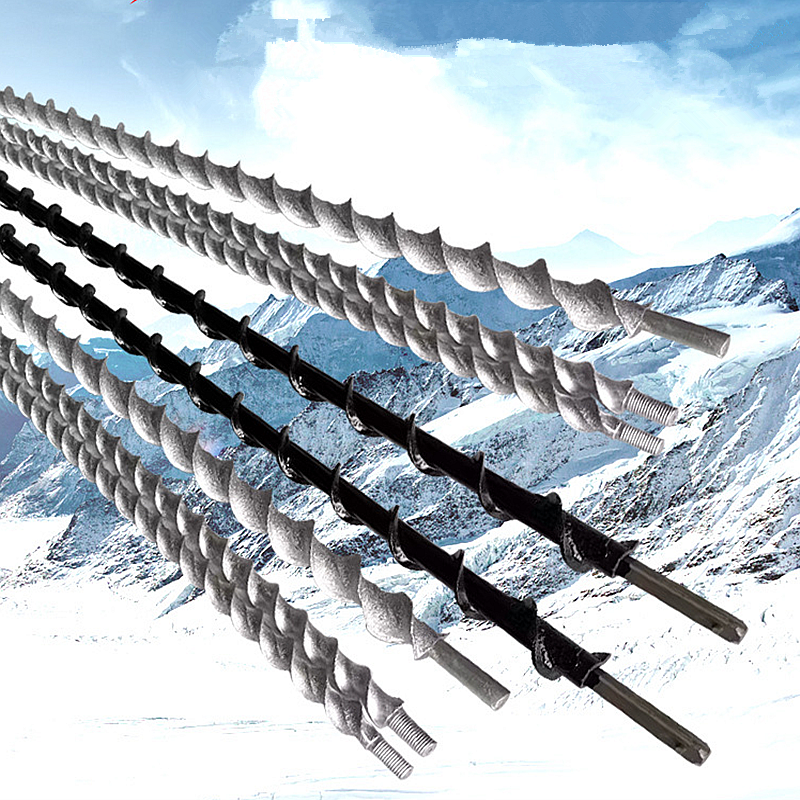 The auger drill pipe adopts the Chinese standard 42mm 50mm 60mm geological drill pipe as the rod body, and the outer diameter of the blade can be made according to customer needs. The commonly used blade outer diameter is generally 110mm 130mm 150mm 180mm, and the front end of the drill pipe is equipped with a three-wing alloy drill bit.